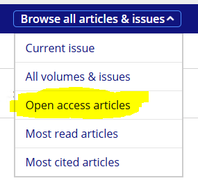 To see first online articles (which are open access during December 2025), click on “Browse all articles & issues” and select “open access articles.”